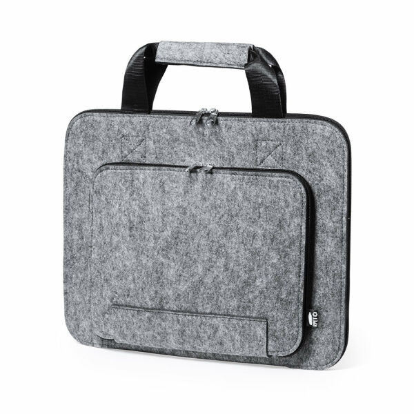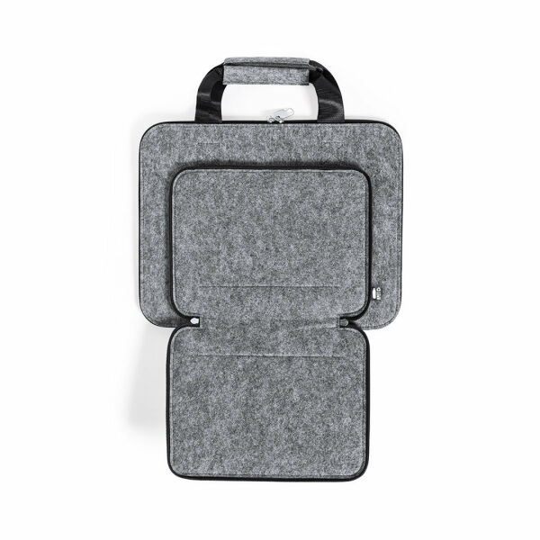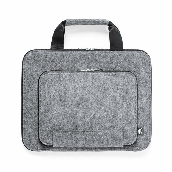 Natuurlijn documenthouder gemaakt van resistent, gerecycled RPET vilt. Het resultaat van de combinatie van de recyclageprocessen van plastic materialen samen met de duizendjarige techniek van viltproductie, wat resulteert in een eco-trendmateriaal dat niet alleen van gerecycleerde oorsprong is, maar ook recycleerbaar wordt. Hoofd- en voorvakken met ritssluiting en metalen trekkers, met bijpassende verstevigde handgrepen en RPET embleem op buitenlabel.