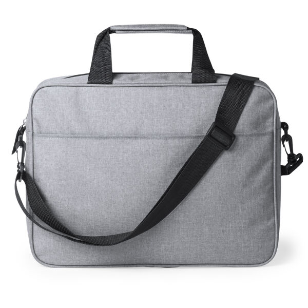Grijze documententas met elegante ritssluiting gemaakt van 600D polyester. BEvat een externe zak met klittenbandsluiting aan de voorzijde. Heeft comfortable verstevigde handgrepen en een verstelbare schouderriem. Heeft een karabijnhaakksluiting en accessoire aan de achterkant voor bevestiging aan een trolley.